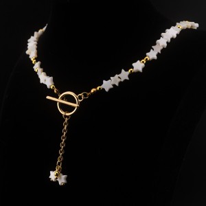 Materiały wykorzystane do stworzenia naszyjnika: masa perłowa (gwiazdki), hematyt pozłacany, stal szlachetna pozłacana.